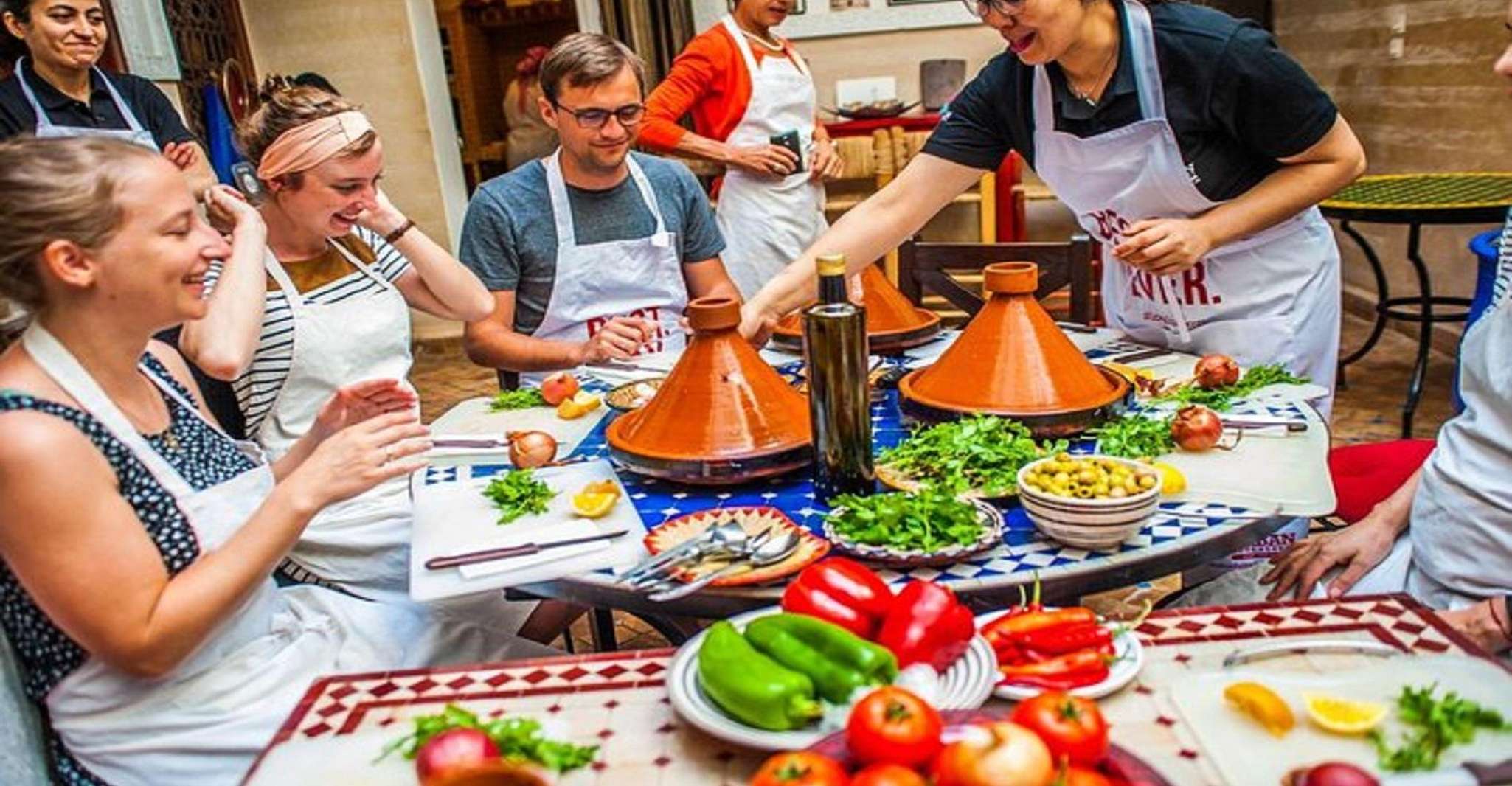 Idéal pour les solos et les duos qui veulent une ambiance conviviale sans le prix d'un cours privé. On cuisine avec 4 à 8 personnes, souvent des voyageurs du même profil. Le format inclut généralement la visite du souk El Had et la dégustation finale. Notre recommandation pour les débutants qui veulent aussi une expérience sociale.