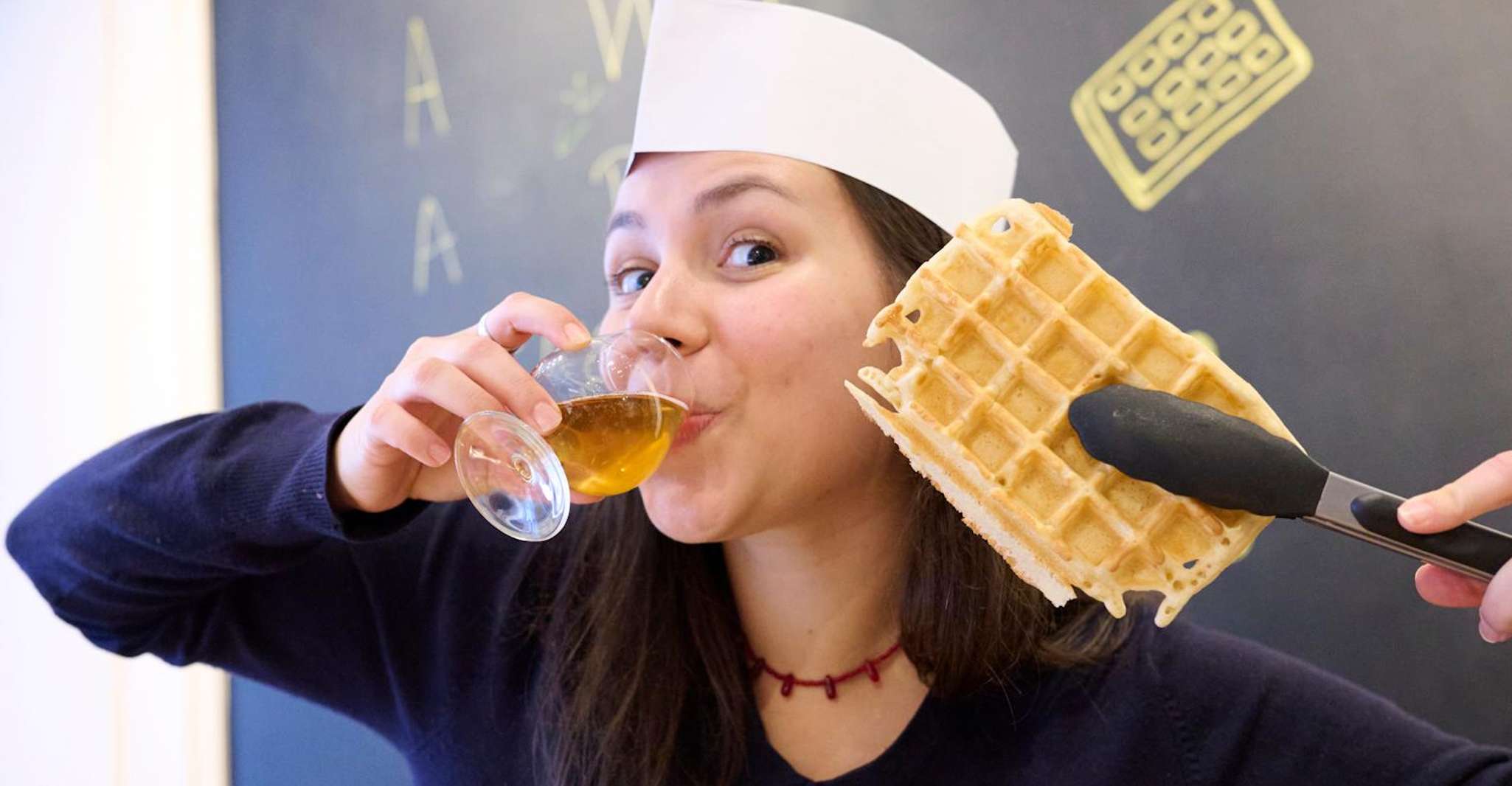 Dégustation illimitée des gaufres produites, accompagnée d'une boisson. Garnitures classiques fournies : sucre glace, fruits, chantilly ou chocolat belge.