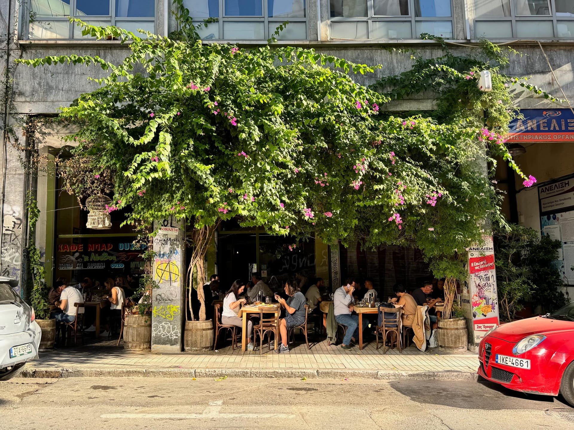 Dans les rues d’Exárcheia, vous trouverez une scène vibrante de bars et cafés comme K*VOX et Nosotros. Ces lieux autogérés accueillent concerts, débats politiques et expositions, cultivant une ambiance artistique, anarchiste et solidaire unique à Athènes.