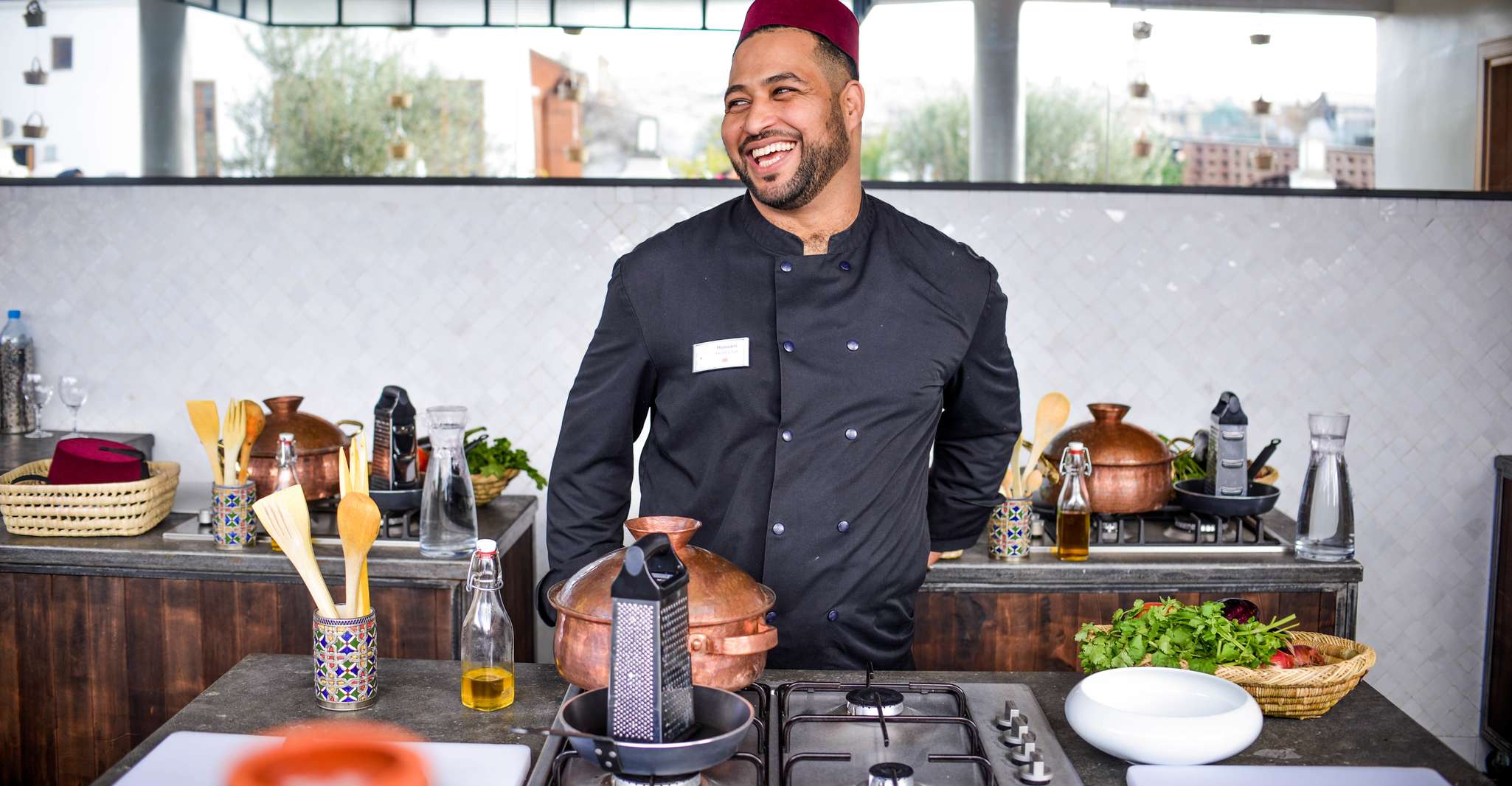 Accueil dans un riad ou restaurant de la médina, remise du tablier. Certains prestataires proposent une tenue traditionnelle, ce n'est pas systématique.