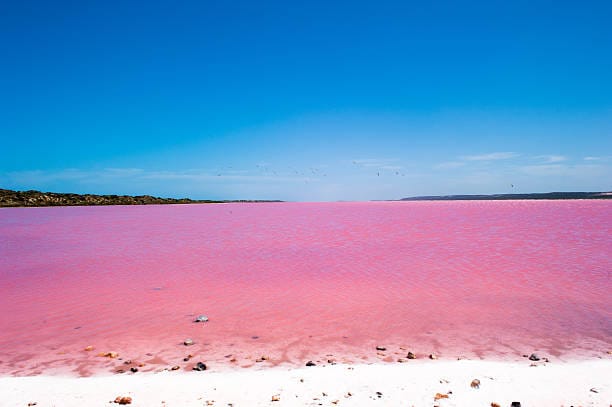 Nichée sur l’île Middle dans l’archipel de la Recherche, le lac Hillier est une merveille naturelle remarquable par sa couleur rose vif. Ce phénomène unique est attribué à l’organisme Dunaliella salina qui prospère dans ses eaux salées. Découvert en 1802 par l’explorateur Matthew Flinders, le lac Hillier reste inaltéré par l’activité humaine grâce à son isolement, entouré de bois et de dunes de sable. Mystérieux et captivant, il symbolise la beauté spectaculaire de l’Australie.