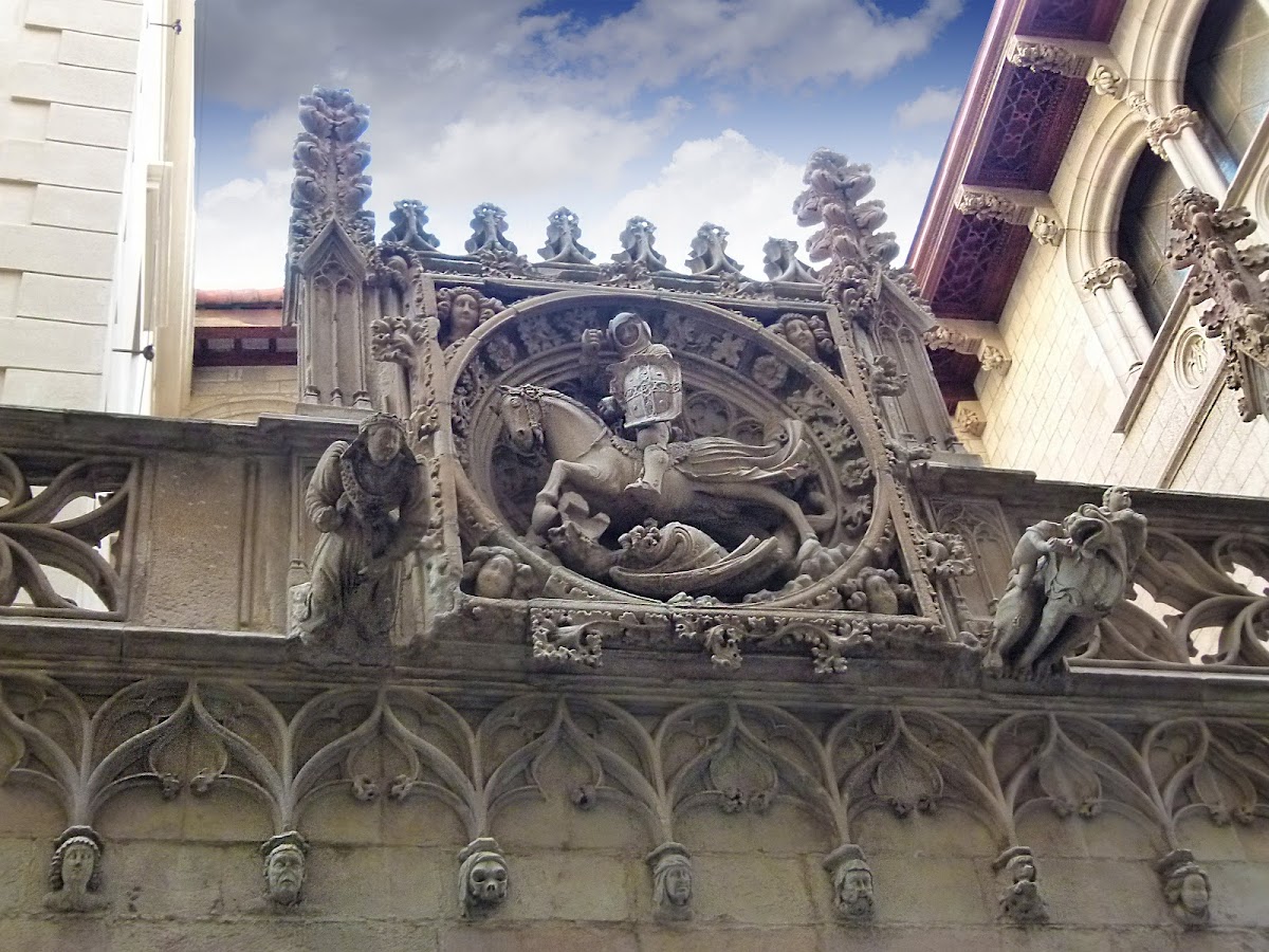 En passant sous le pont, levez les yeux pour repérer la gargouille néogothique intégrée à la structure. Cet élément décoratif, ajouté en 1928, respecte la tradition médiévale des gargouilles protectrices ornant les édifices religieux et civils. Son expression fantastique et sa facture soignée illustrent la volonté de Rubió i Bellver de créer un ensemble cohérent avec l’esprit du quartier gothique, tout en affirmant son propre style.
