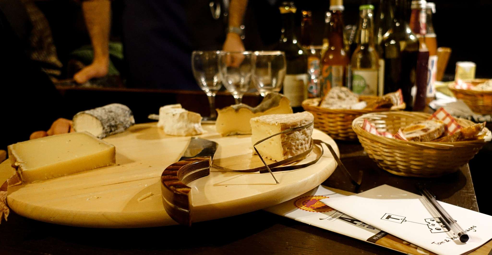 Fromages, charcuteries ou petite restauration associés aux vins dégustés. Format plus convivial, moins académique. Taverne St Amant et Caves Berigny l'organisent régulièrement. Bon compromis pour un groupe mixte où tout le monde ne se passionne pas pour l'œnologie pure.