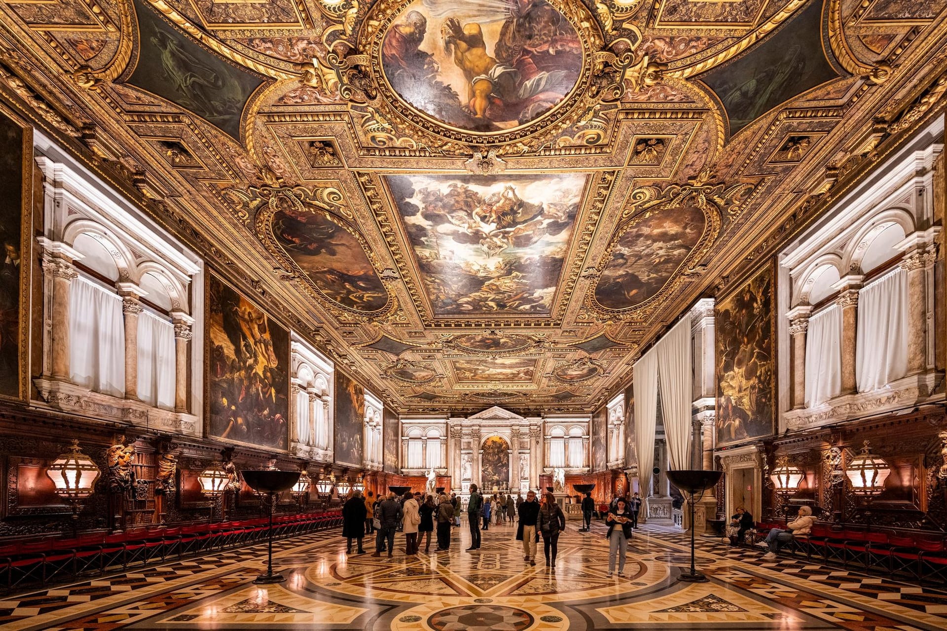 Le vaste cycle de Tintoretto, comprenant une trentaine de toiles, confère au lieu son surnom de « chapelle Sixtine de Venise ». Chaque composition met en lumière des épisodes bibliques, avec une virtuosité technique remarquable. L’agencement soigné des peintures crée une immersion totale.