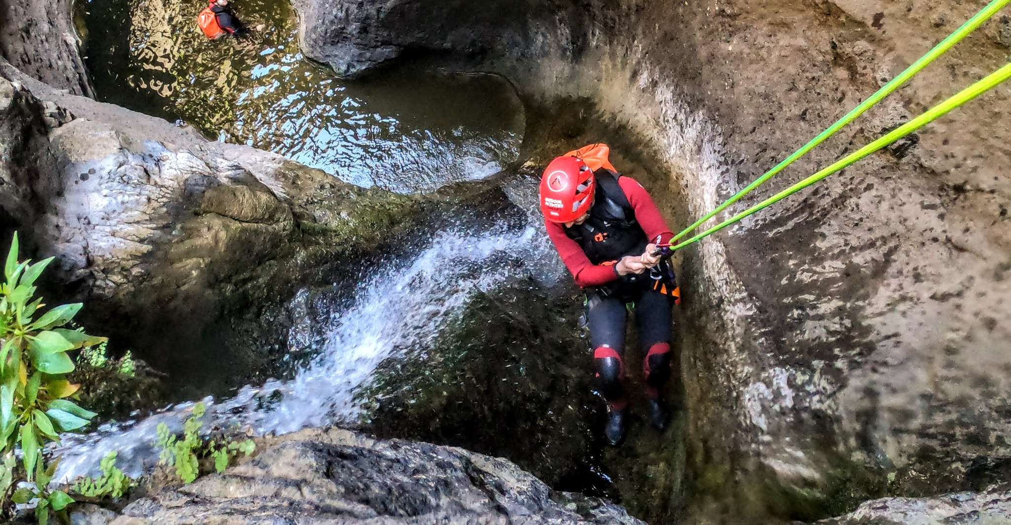 Le format le plus répandu ailleurs, moins courant à Tenerife mais présent dans le nord et le sud de l'île. Cascades, piscines naturelles, sauts et rappels dans l'eau. Le Barranco de Guaria à Costa Adeje et les canyons de La Orotava en sont les meilleurs exemples. Niveau physique légèrement supérieur au sec, combinaison fournie. Notre recommandation pour ceux qui veulent une expérience canyoning complète et typique.