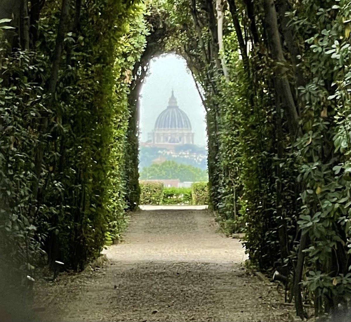 L’alignement visuel entre la colline de l’Aventin et la basilique Saint-Pierre constitue la véritable particularité du lieu. En regardant par le trou de serrure, vous traversez symboliquement trois territoires souverains : l’Italie, l’Ordre souverain de Malte et la Cité du Vatican. Cette triple frontière invisible, concentrée en un seul regard, fait toute l’originalité de l’expérience. L’allée de cyprès, soigneusement entretenue dans les jardins de la villa, guide naturellement l’œil vers la coupole lointaine, créant un effet de profondeur saisissant qui a fait la renommée mondiale de ce point de vue.