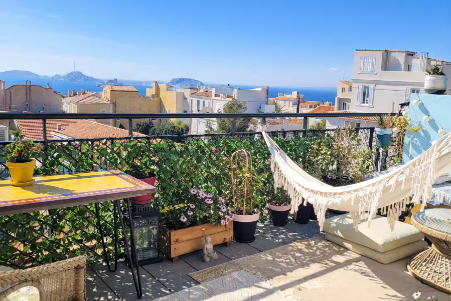 Parmi nos Airbnb pas chers à Marseille, cet appartement vous permettra d’être perché dans ce cocon lumineux avec terrasse à Endoume, un appartement d’exception offrant une vue mer panoramique sur le château d’If et les îles du Frioul pour des couchers de soleil inoubliables.