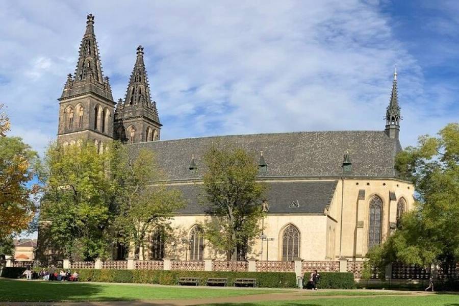 Rebâtie au XIXe siècle dans un style néogothique, la basilique Saint-Pierre-et-Saint-Paul domine les hauteurs de Vyšehrad. Ses tours élancées attirent immédiatement le regard, tandis que ses chapelles renferment des fresques d’une grande rareté. L’atmosphère solennelle du lieu est renforcée par les détails architecturaux, illustrant une époque de renouveau artistique remarquable.