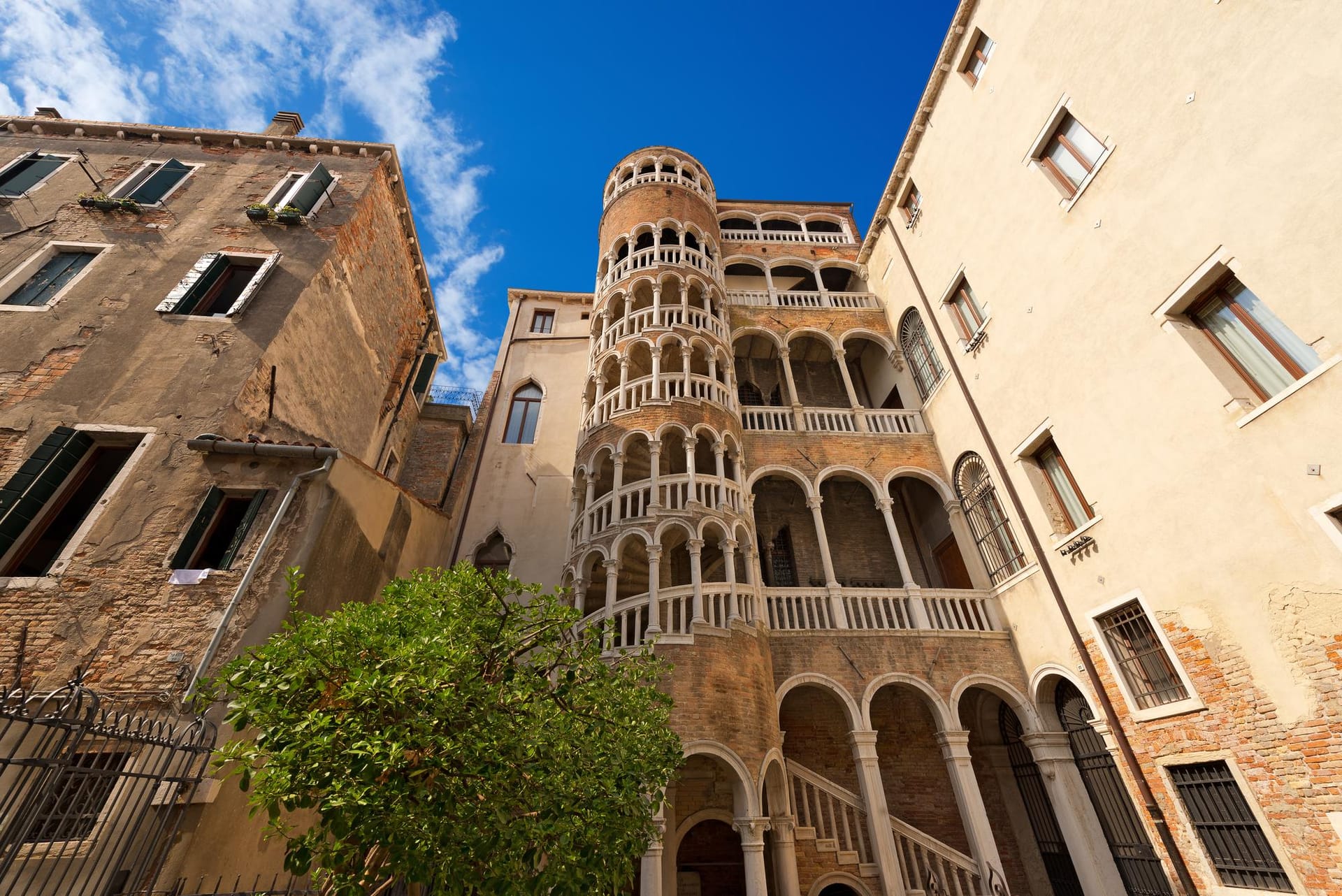 L’escalier baptisé “bovolo” (escargot en dialecte vénitien) fut érigé à la fin du XVe siècle pour la noble famille Contarini. Enrichi de colonnes de style Renaissance et construit en briques, il constitue un chef-d’œuvre d’architecture et un défi technique pour l’époque. Aujourd’hui, grimper ses marches vous plonge dans l’histoire de Venise tout en vous offrant, à chaque palier, des points de vue uniques sur la cour intérieure et la cité.
