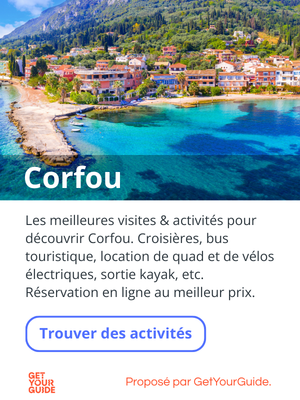 Au départ de Corfou, un bus à impériale dessert la presqu’île de Kanoni. Il vous permettra de visiter d’autres sites majeurs tels que la vieille ville de Corfou et le palais de Mon Repos. Lors de ce tour guidé en français 🇫🇷, vous n’aurez qu’à vous installer confortablement sur votre siège. Surtout, préparez votre appareil photo pour capturer les merveilleux points de vue sur les paysages !